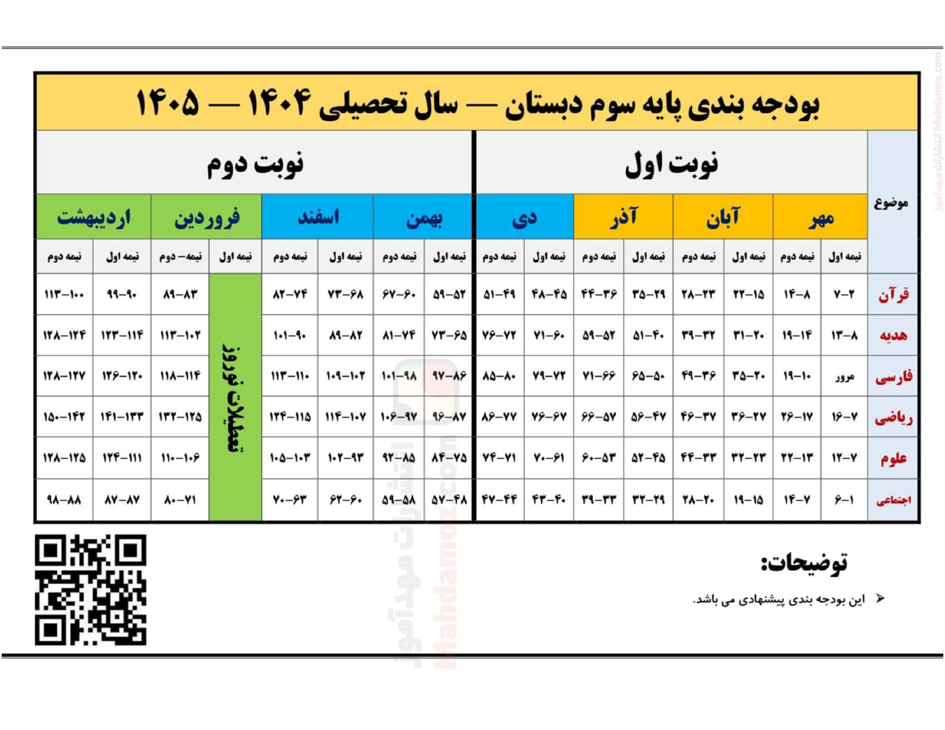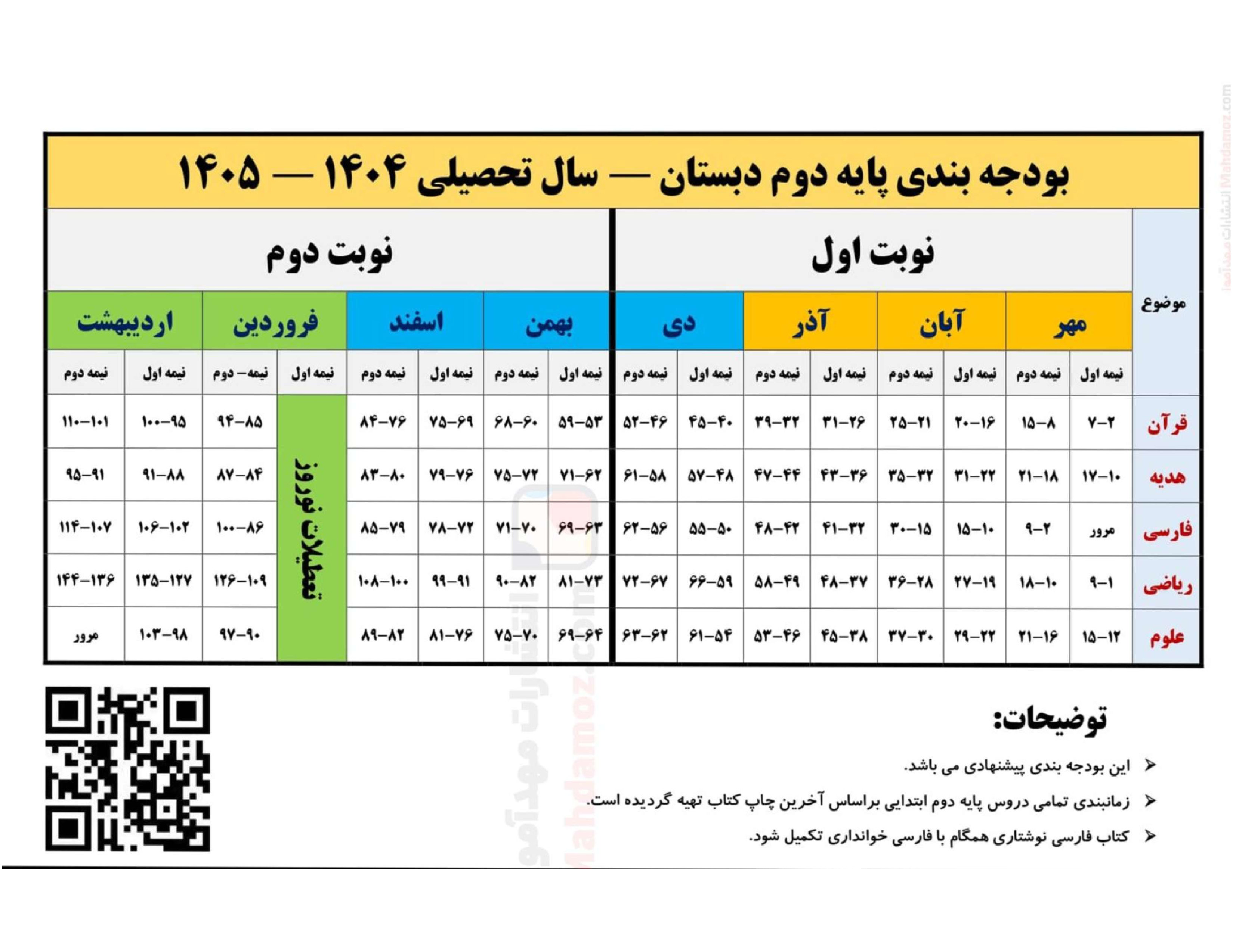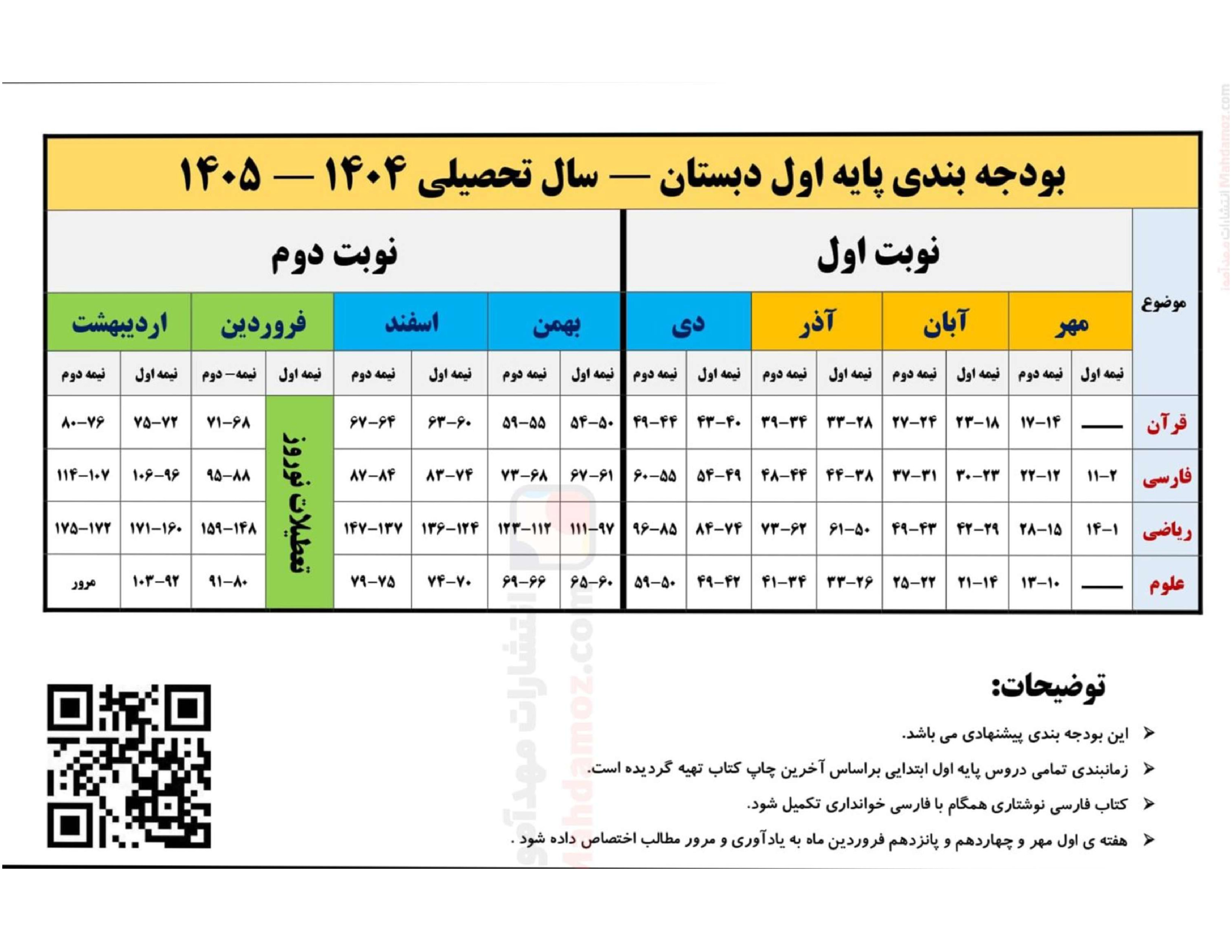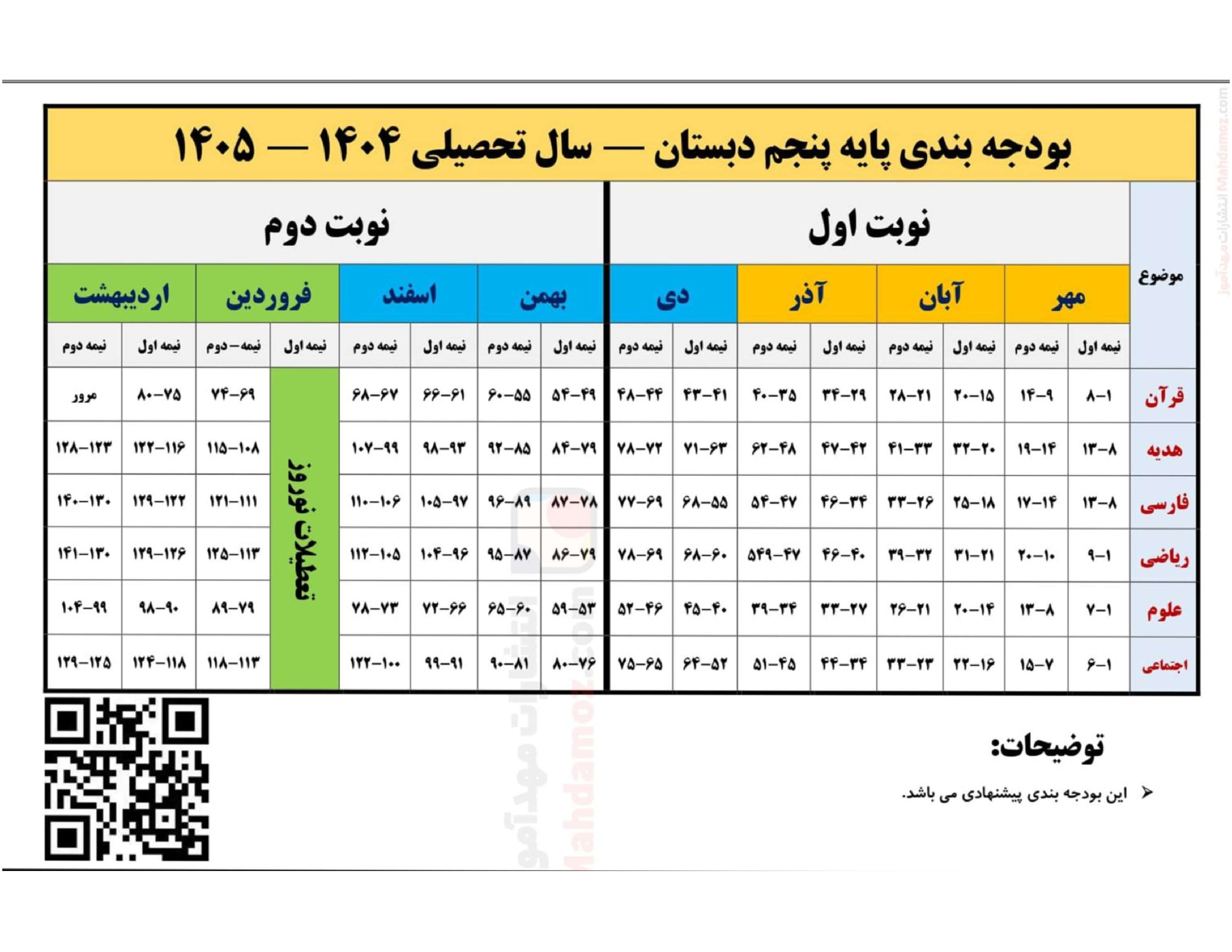 بودجه بندی پیشنهادی مقطع ابتدایی سال تحصیلی 1405-1404