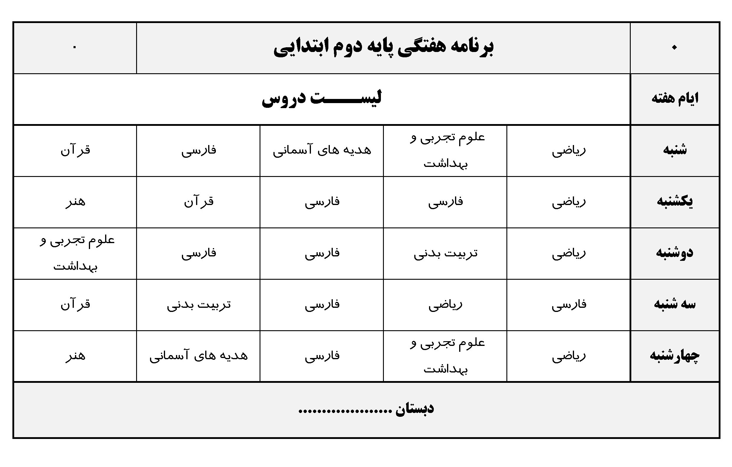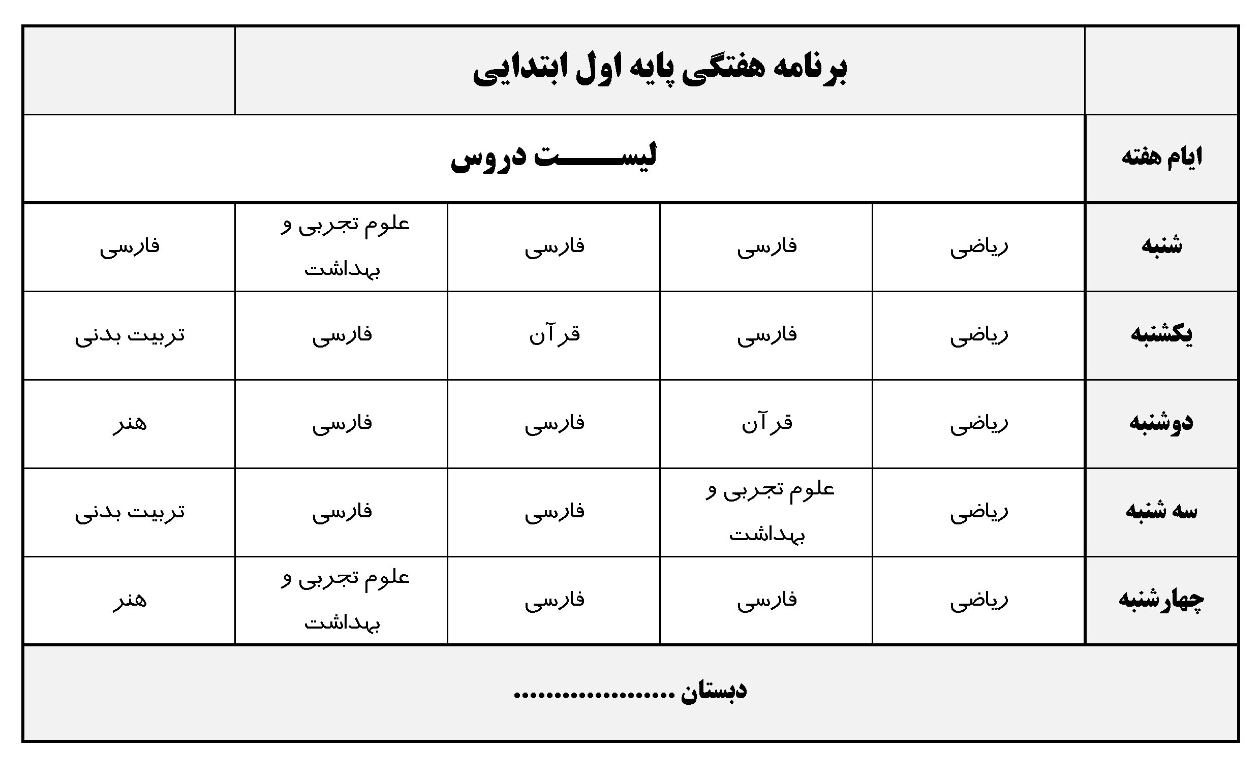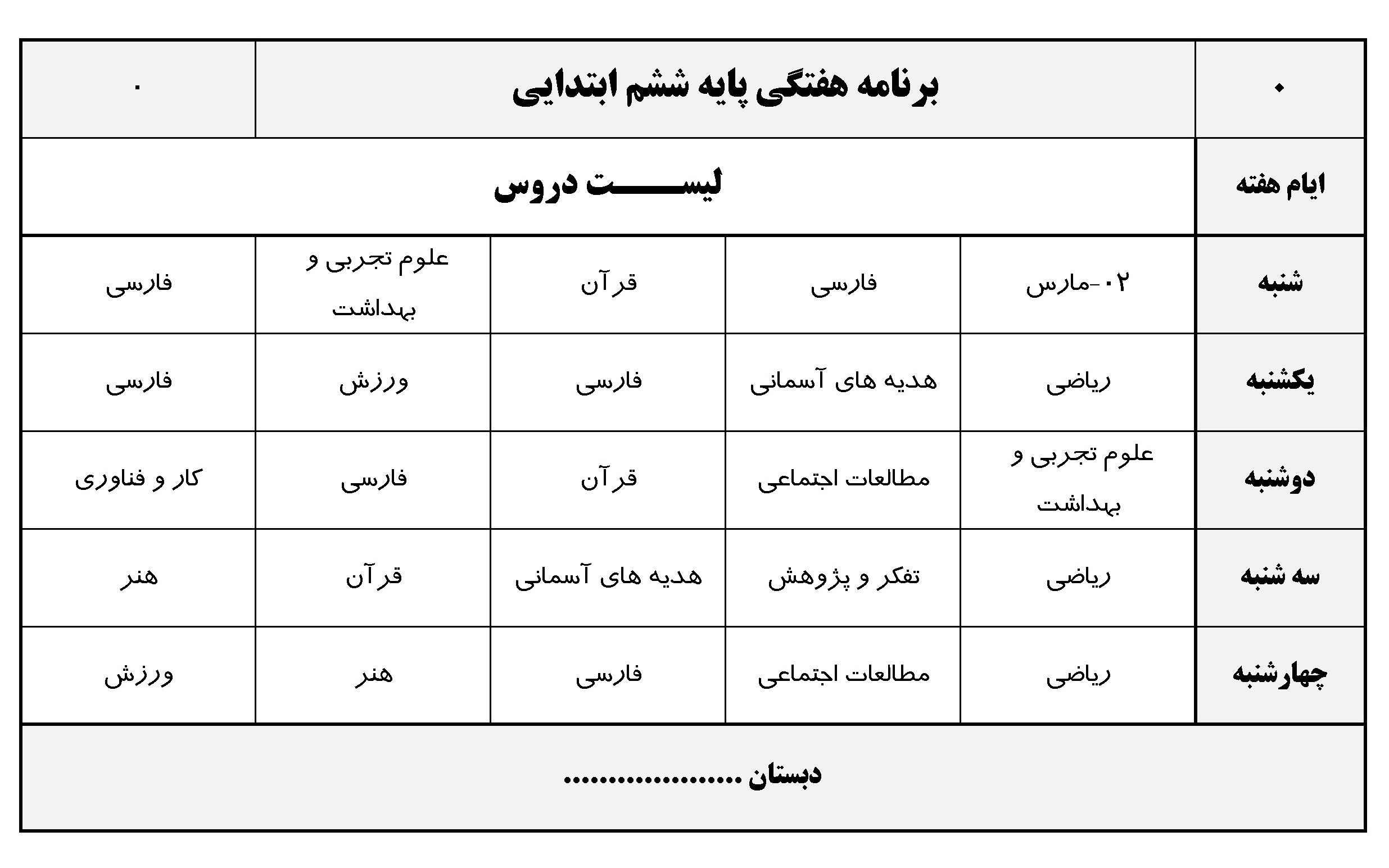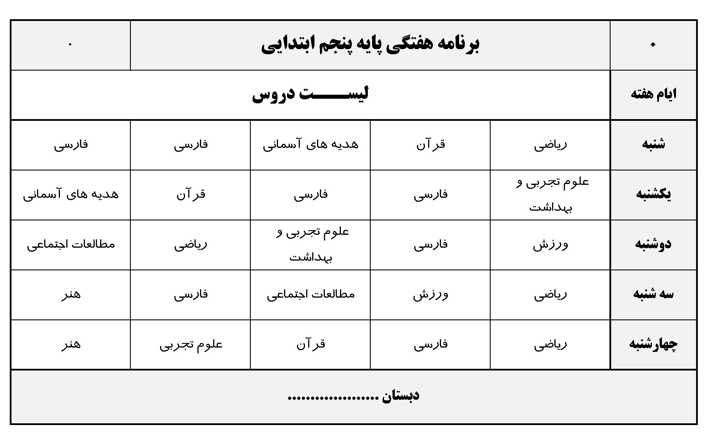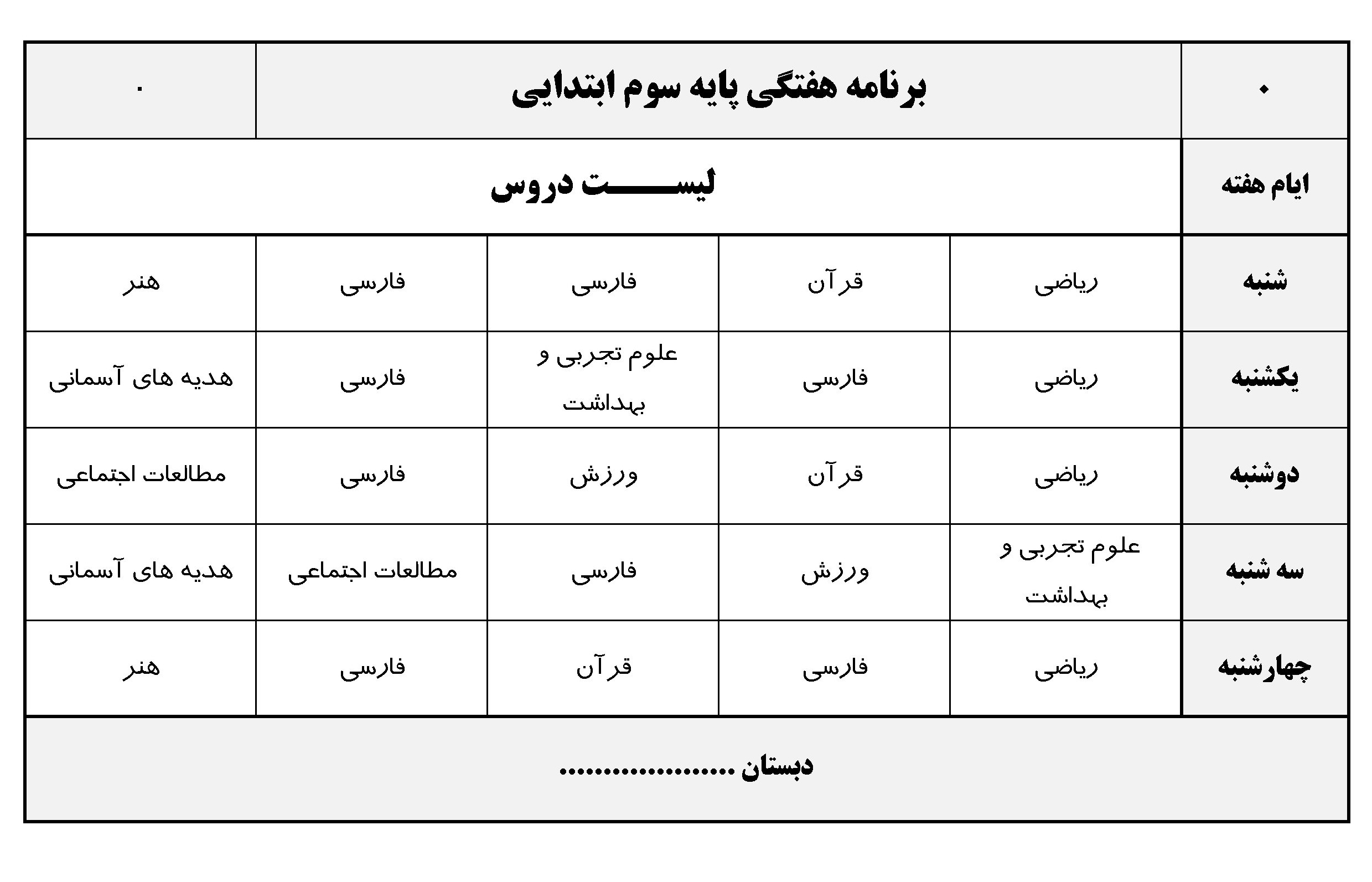 3- طراحی و چینش سیستمی برنامه هفتگی و چاپ برنامه هفتگی